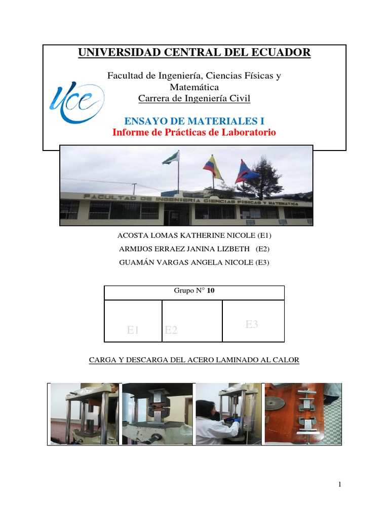 con respecto a la sexta práctica de Ensayo de Materiales que hace referencia a la carga y