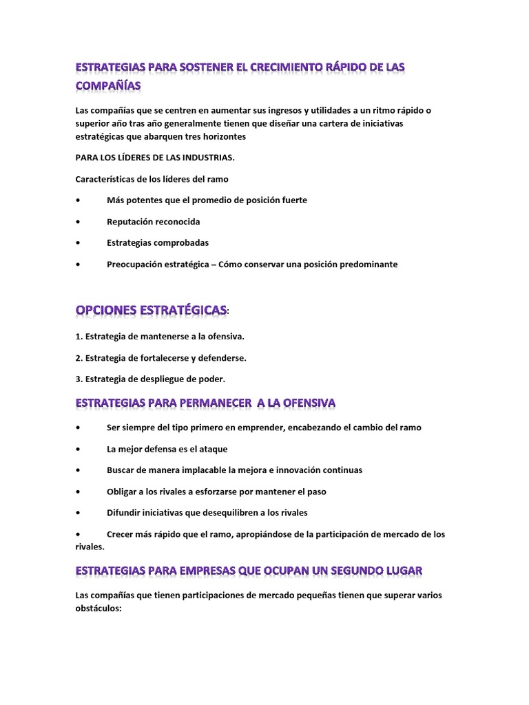 1. Estrategias ofensivas para adquirir participación de mercado