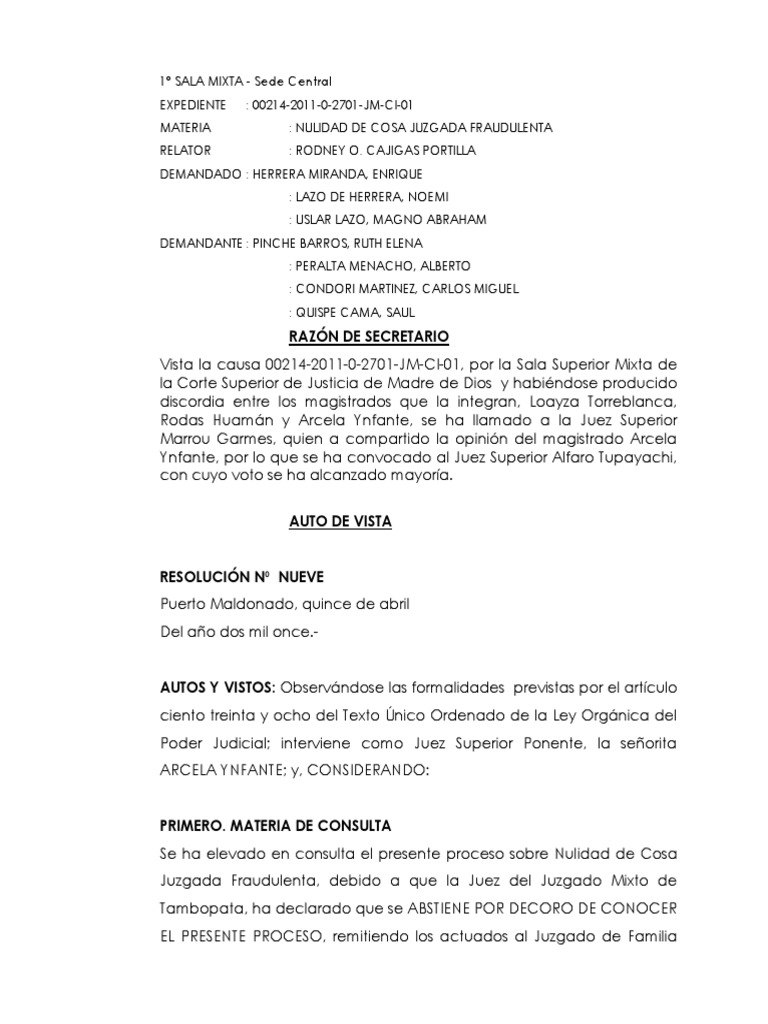 Vista la causa 00214-2011-0-2701-JM-CI-01, por la Sala Superior Mixta de