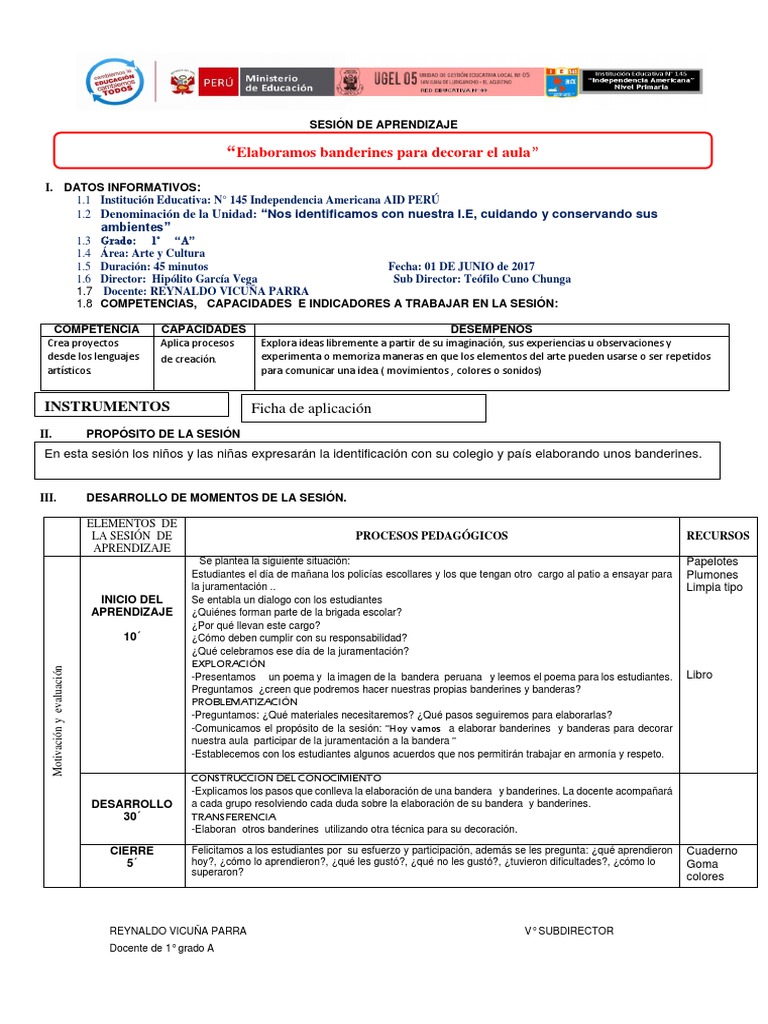 1.5 Duración: 45 minutos Fecha: 01 DE JUNIO de 2017