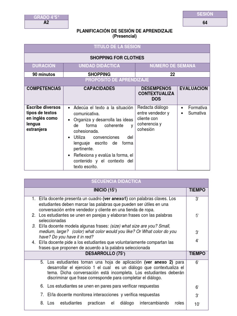 PLANIFICACIÓN DE SESIÓN DE APRENDIZAJE