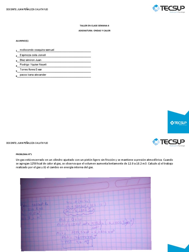 del gas en el proceso y c) el flujo de calor total hacia dentro o hacia fuera del gas.