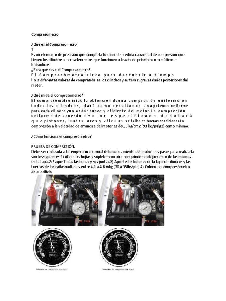 l o s diferentes valores de compresión en los cilindros y evitara sí graves daños posteriores del