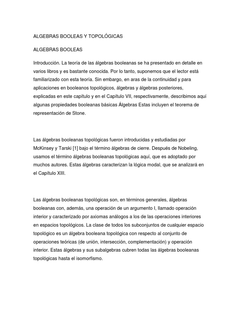 Introducción. La teoría de las álgebras booleanas se ha presentado en detalle en