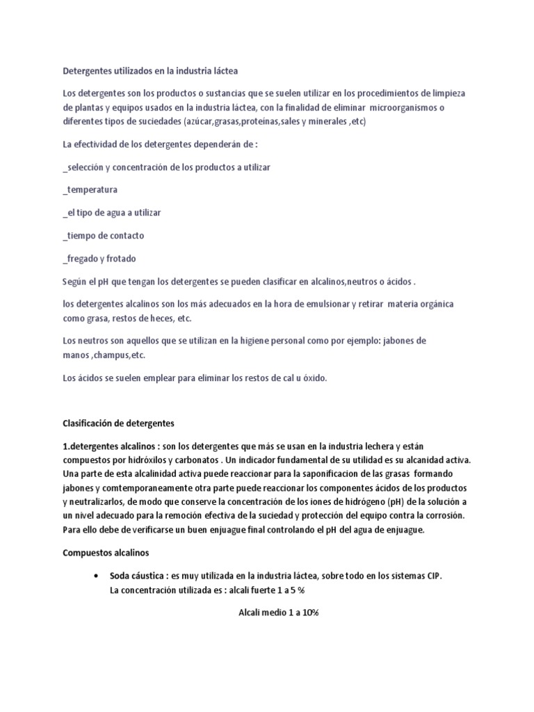 [Link] alcalinos : son los detergentes que más se usan en la industria lechera y están