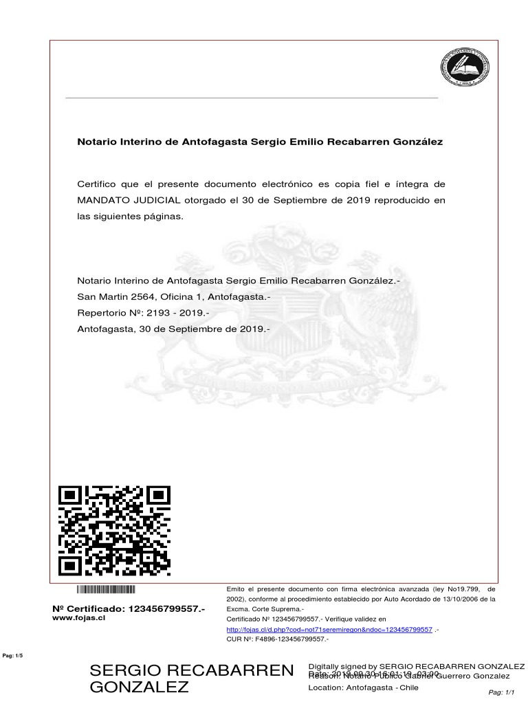 Notario Interino de Antofagasta Sergio Emilio Recabarren González.-