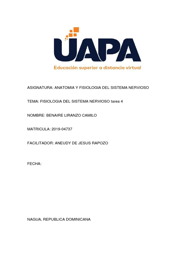 TEMA: FISIOLOGIA DEL SISTEMA NERVIOSO tarea 4