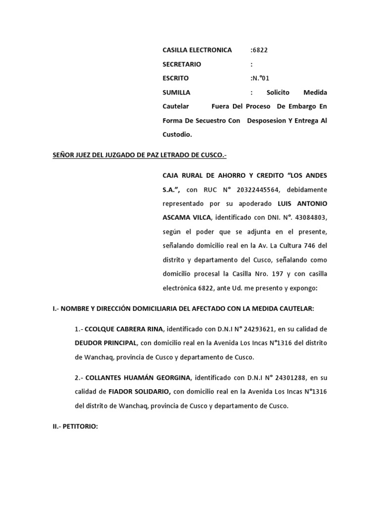 Cautelar Fuera Del Proceso De Embargo En