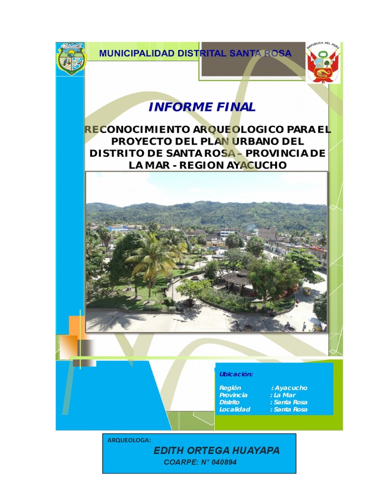 RECONOCIMIENTO ARQUEOLOGICO PARA EL PLAN URBANO DEL DISTRITO DE SANTA ROSA