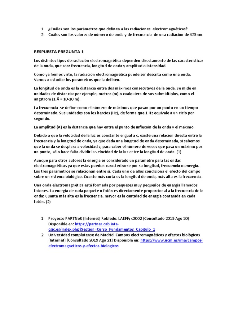 1. ¿Cuáles son los parámetros que definen a las radiaciones electromagnéticas?