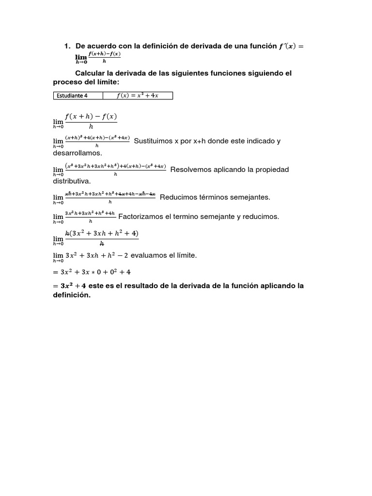 2. En los ejercicios 2, 3 y 4 calcule la derivada de las siguientes