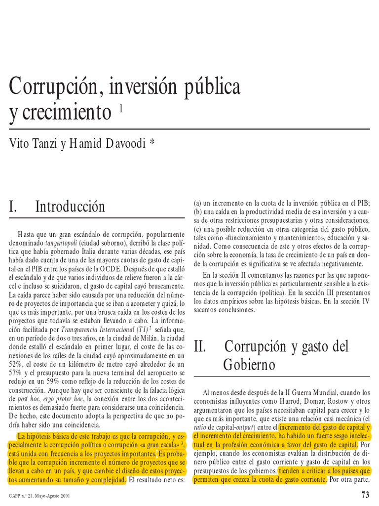 nes, salarios o subsidios de individuos concretos. la suma de la inversión de capital público y privado. Por tanto, la corrupción debe