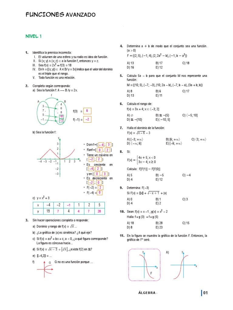 a) Dominio y rango de f(x) = x ... D) 8 E) 23