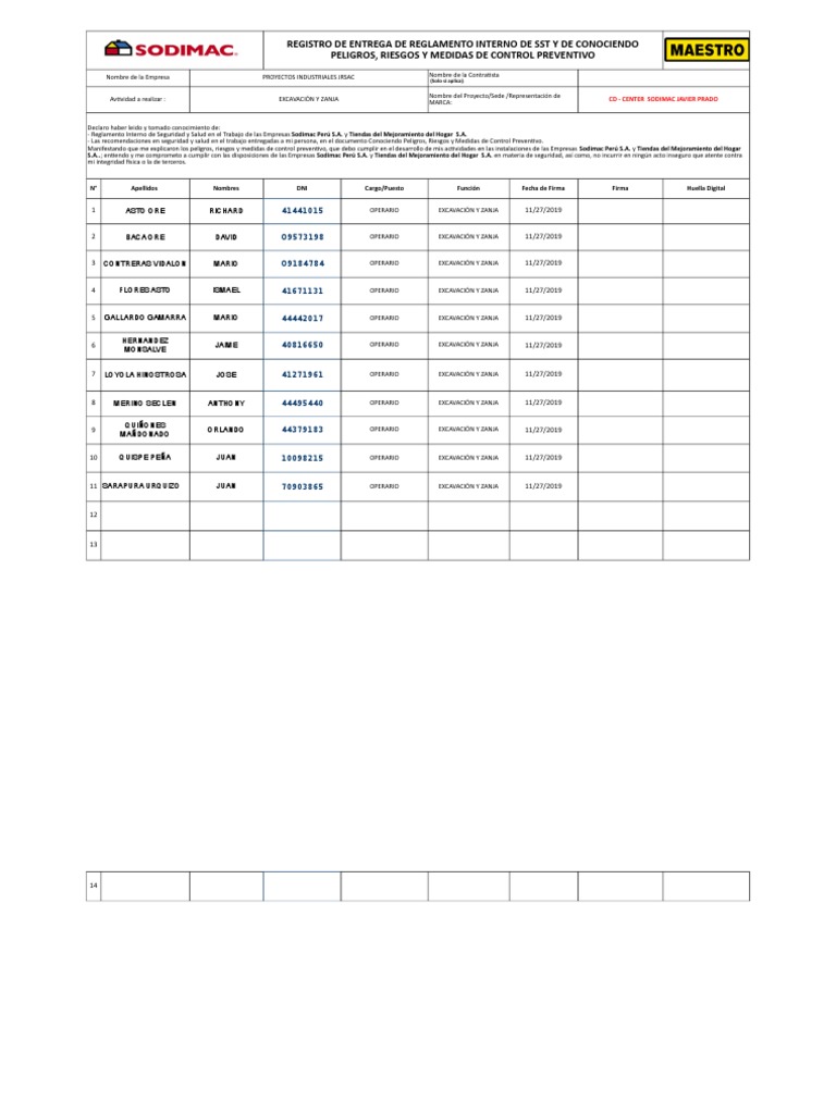 11 SARAPURA URQUIZO JUAN 70903865 OPERARIO EXCAVACIÓN Y ZANJA 11/27/2019