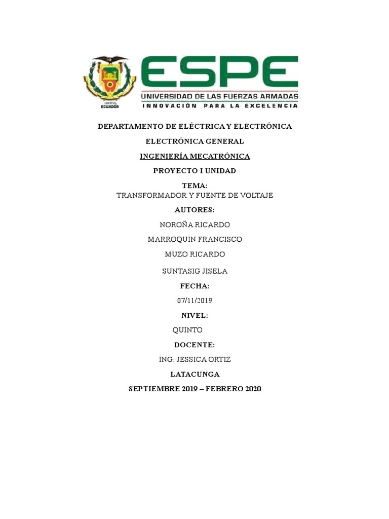 TRANSFORMADOR Y FUENTE DE VOLTAJE