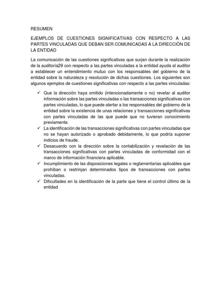 de la auditoría29 con respecto a las partes vinculadas a la entidad ayuda al auditor
