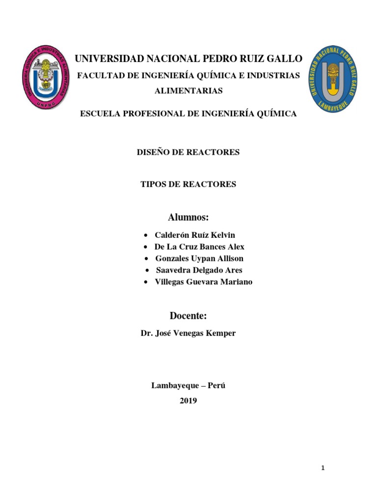 Friedrich, F. J., & Alvarez, F. G. (s.f.). Introduccion a los reactores químicos. Universidad