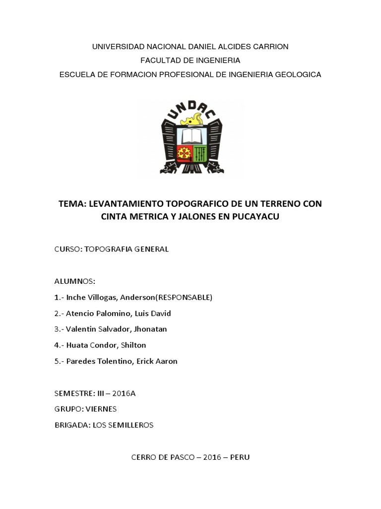 TEMA: LEVANTAMIENTO TOPOGRAFICO DE UN TERRENO CON