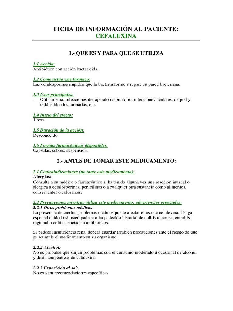 Si estima que la acción de cefalexina es demasiado fuerte o débil, comuníqueselo a su