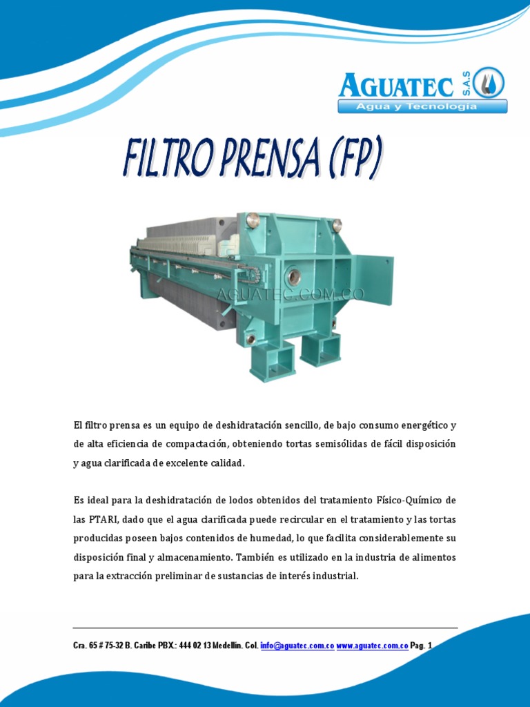 El filtro prensa es un equipo de deshidratación sencillo, de bajo consumo energético y