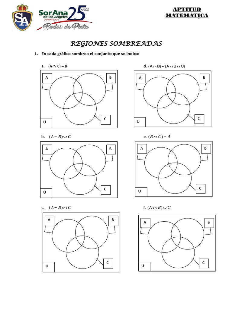 2. Expresar mediante operaciones entre conjuntos cada uno de las zonas sombreadas: