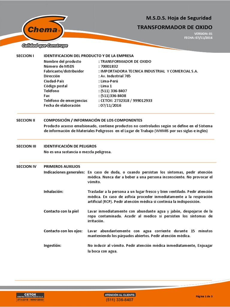M.S.D.S. Hoja de Seguridad