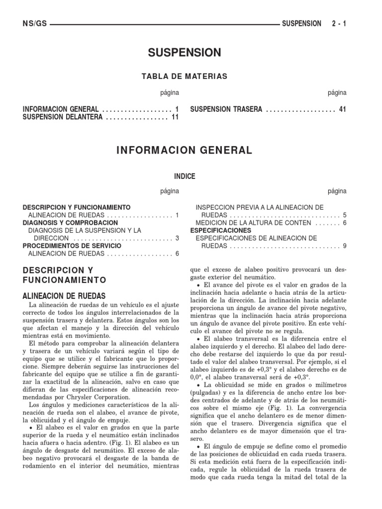 INFORMACION GENERAL . . . . . . . . . . . . . . . . . . . 1 SUSPENSION TRASERA . . . . . . . . . . . . . . . . . . . 41