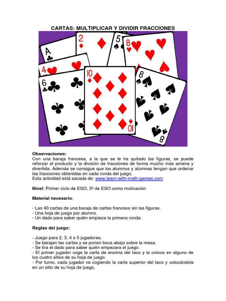 CARTAS: MULTIPLICAR Y DIVIDIR FRACCIONES