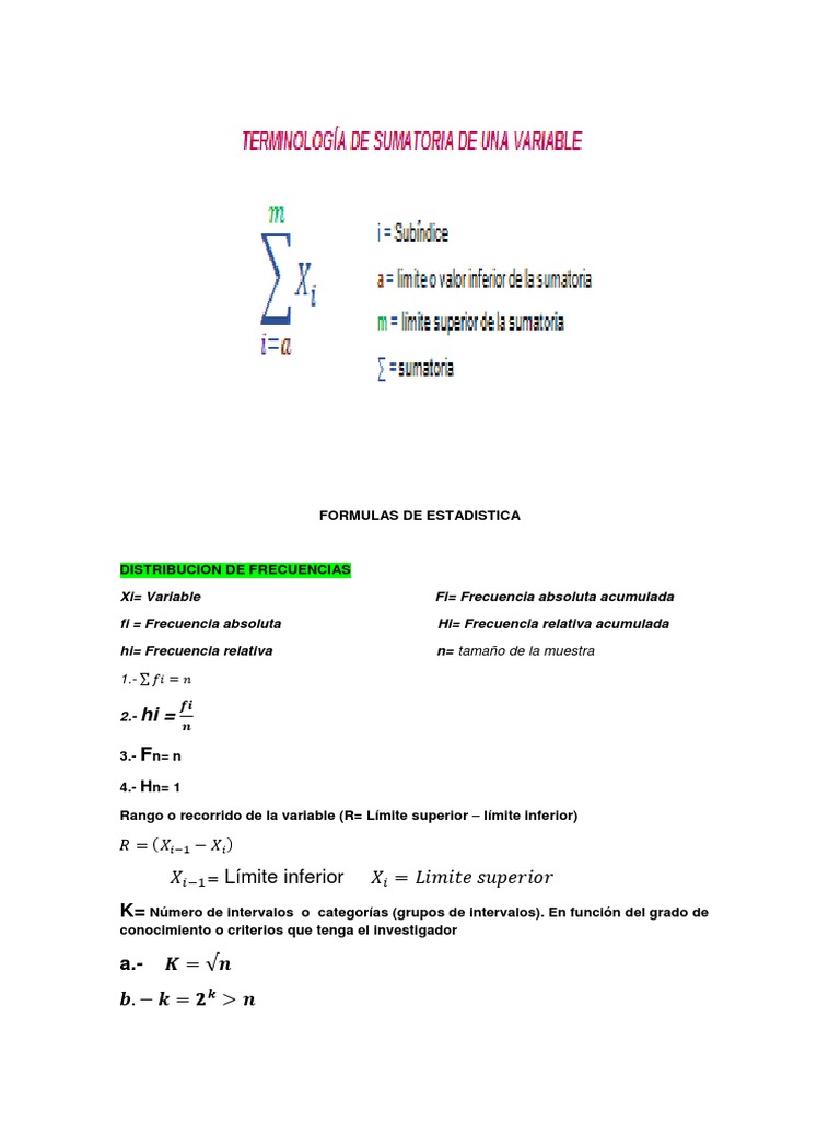 FORMULAS DE ESTADISTICA