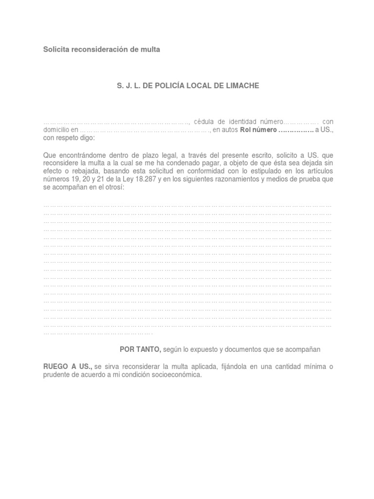 reconsidere la multa a la cual se me ha condenado pagar, a objeto de que ésta sea dejada sin