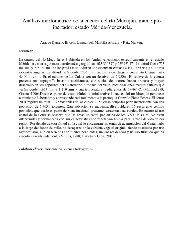 Análisis morfométrico de la cuenca del río Mucujún, municipio