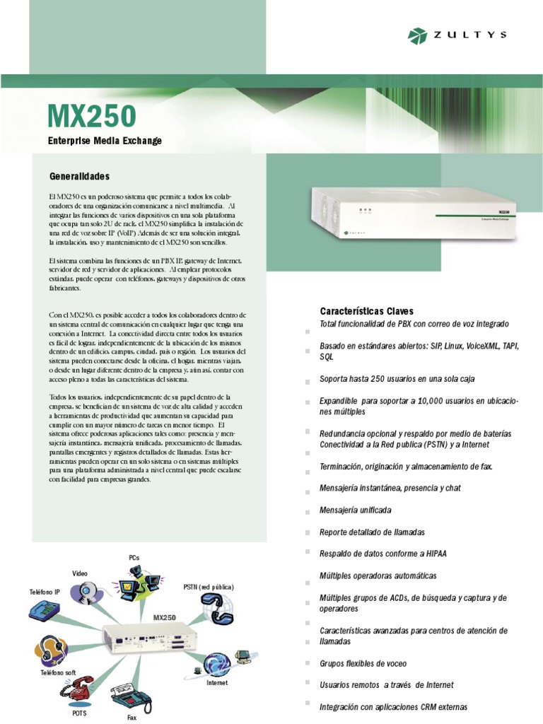 El MX250 puede interactuar con cualquier teléfono que cumpla con SIP. Zultys