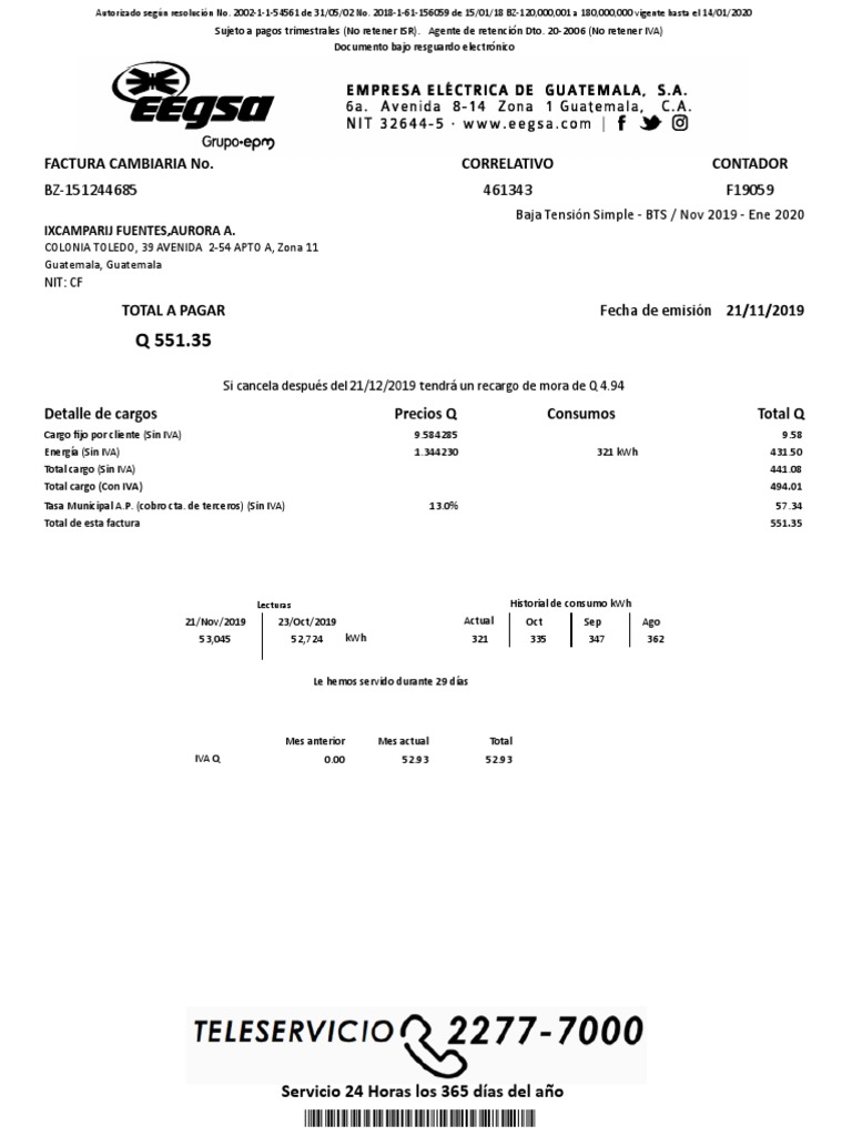 Si cancela después del 21/12/2019 tendrá un recargo de mora de Q 4.94