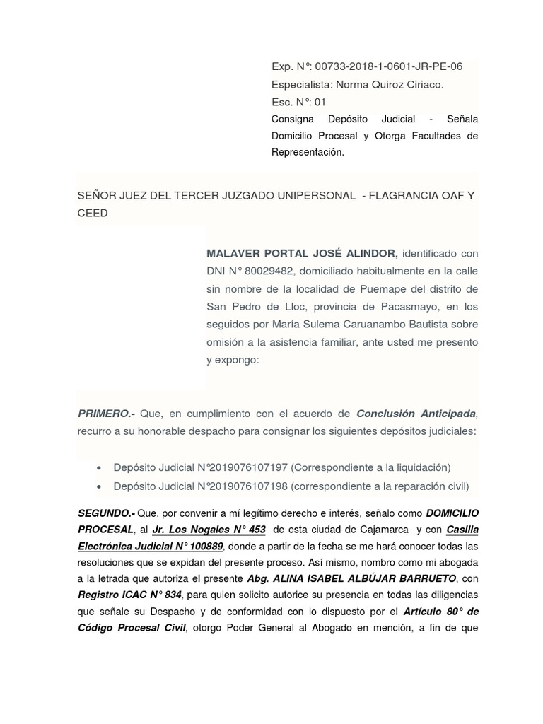 a la letrada que autoriza el presente Abg. ALINA ISABEL ALBÚJAR BARRUETO, con