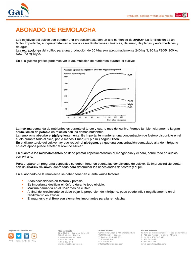 En el abonado de la remolacha se deben tener en cuenta varios factores: