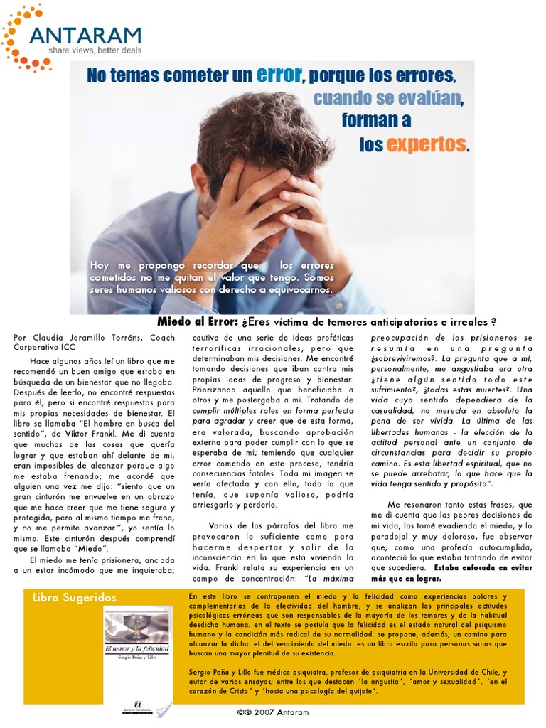 Miedo al Error: ¿Eres víctima de temores anticipatorios e irreales ?