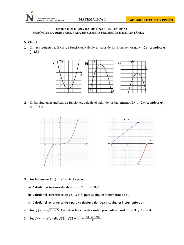 SESIÓN 05: LA DERIVADA. TASA DE CAMBIO PROMEDIO E INSTANTÁNEA
