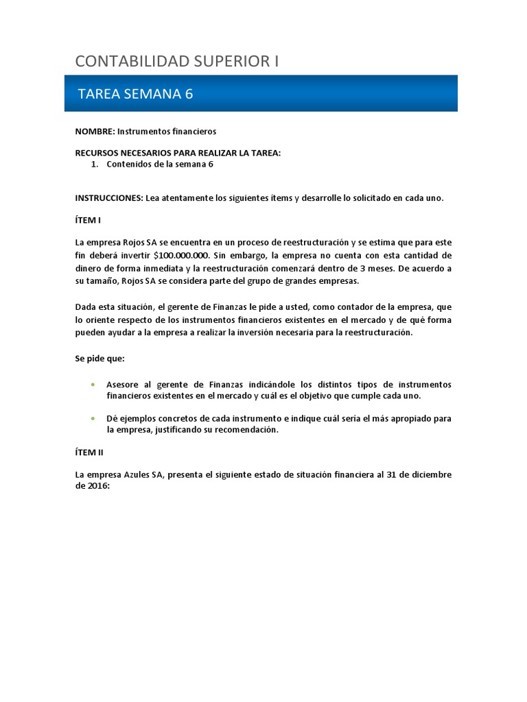 • Del estado de situación financiera presentado, identifique y clasifique los instrumentos
