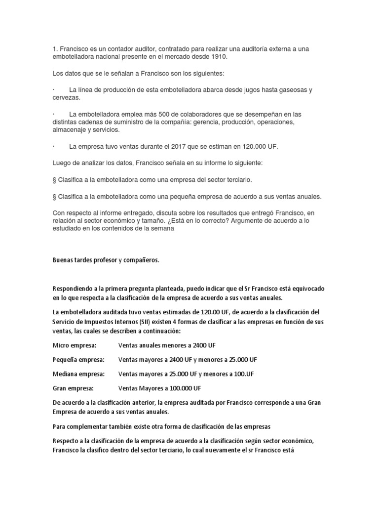 De acuerdo a la clasificación anterior, la empresa auditada por Francisco corresponde a una Gran