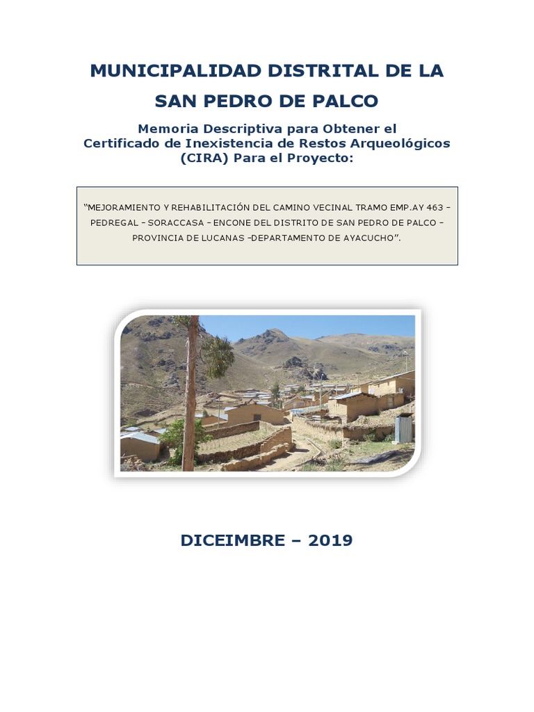 La Municipalidad Distrital de San Pedro de Palco, financió la elaboración del Estudio de Pre