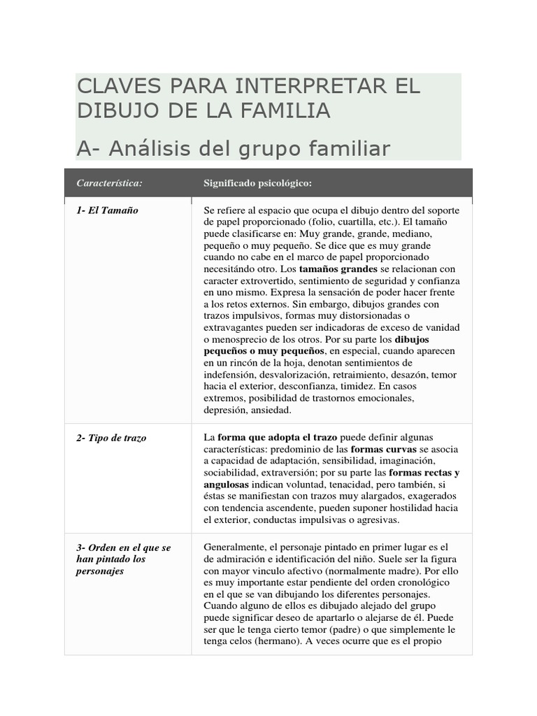 de las figuras (padre, identificación con el núcleo familiar o sentimientos de