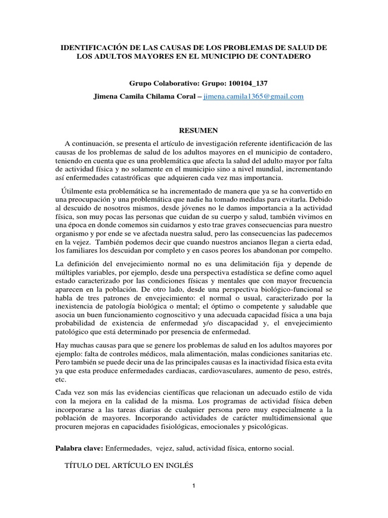 causas de los problemas de salud de los adultos mayores en el municipio de contadero,