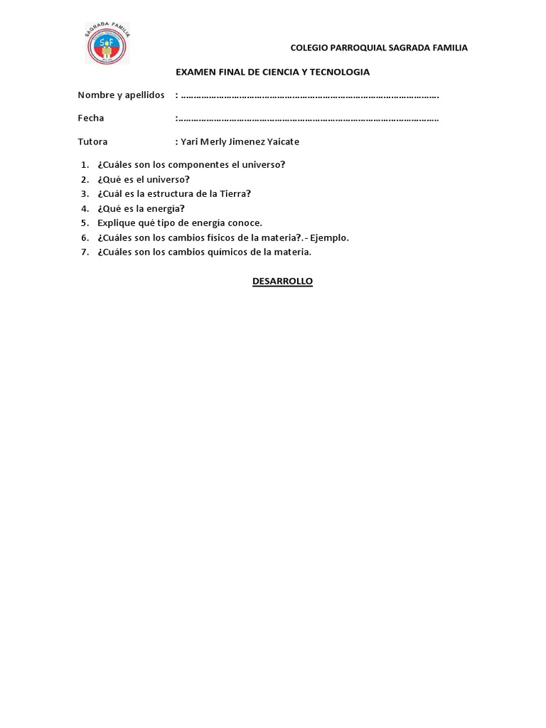 EXAMEN FINAL DE CIENCIA Y TECNOLOGIA