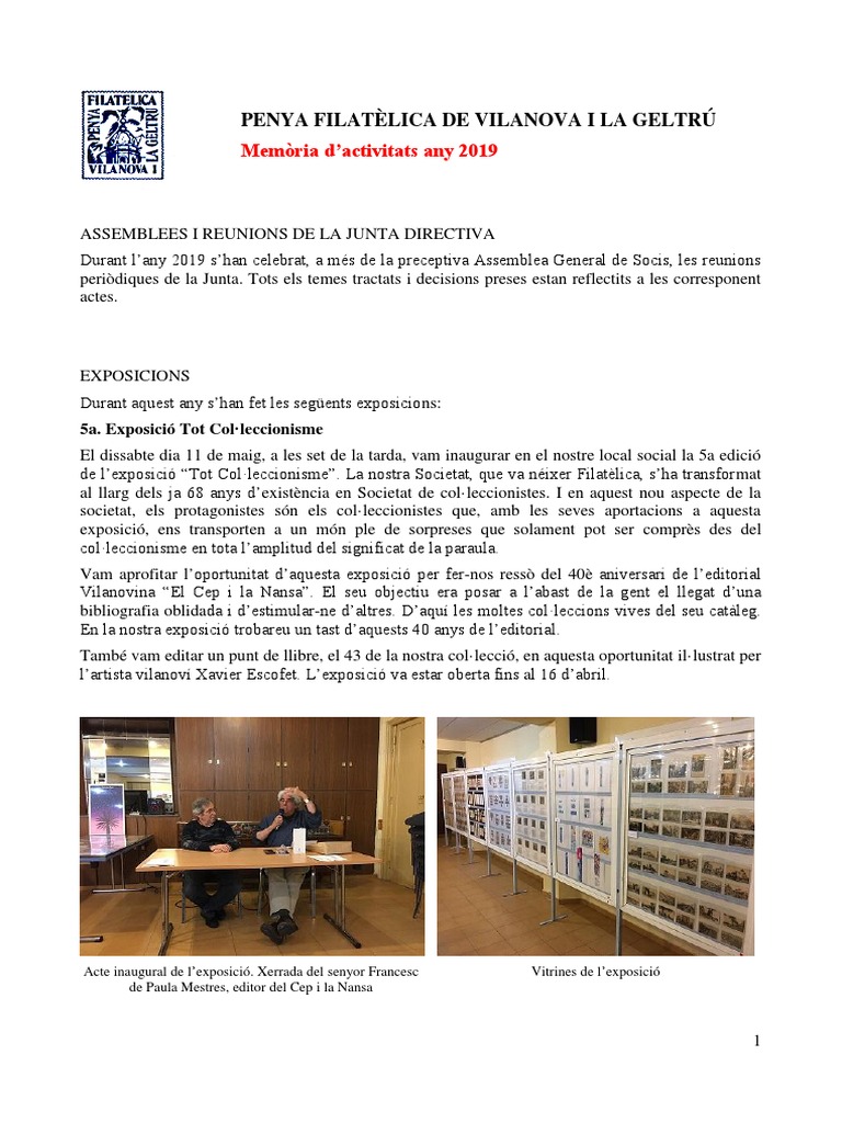 de l’exposició “Tot Col·leccionisme”. La nostra Societat, que va néixer Filatèlica, s’ha transformat