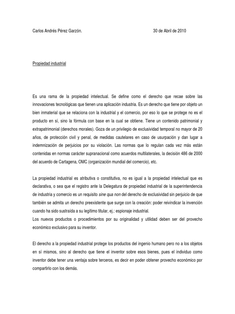 La propiedad industrial es atributiva o constitutiva, no es igual a la propiedad intelectual que es