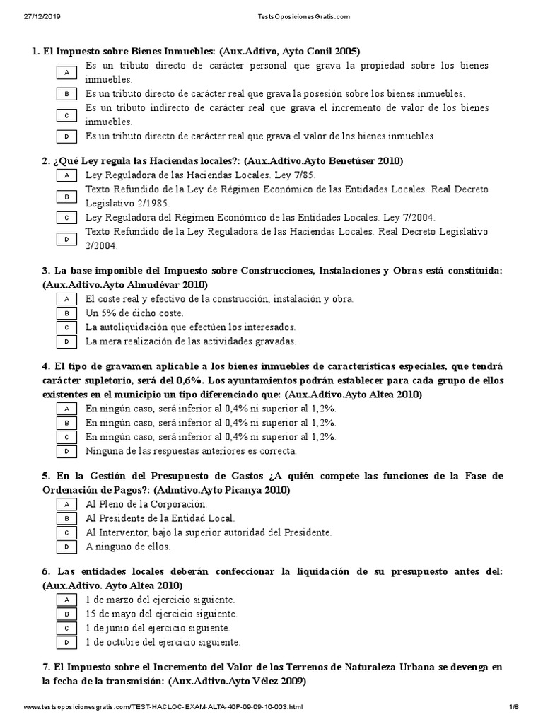8. Que ley regula las haciendas locales: ([Link] Picassent 2010)