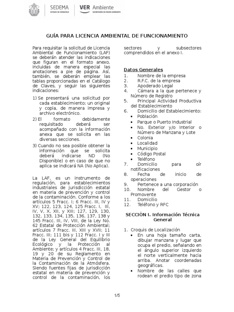 Ambiental de Funcionamiento (LAF) comprendidos en el anexo I.
