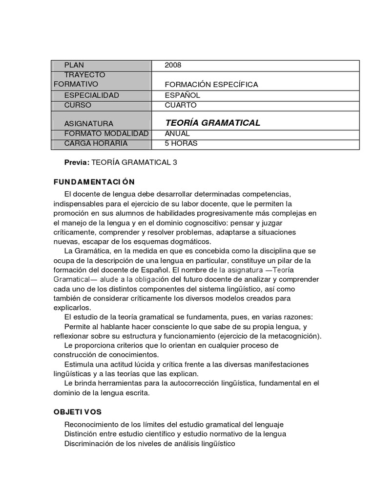 Gramatical― alude a la obligación del futuro docente de analizar y comprender