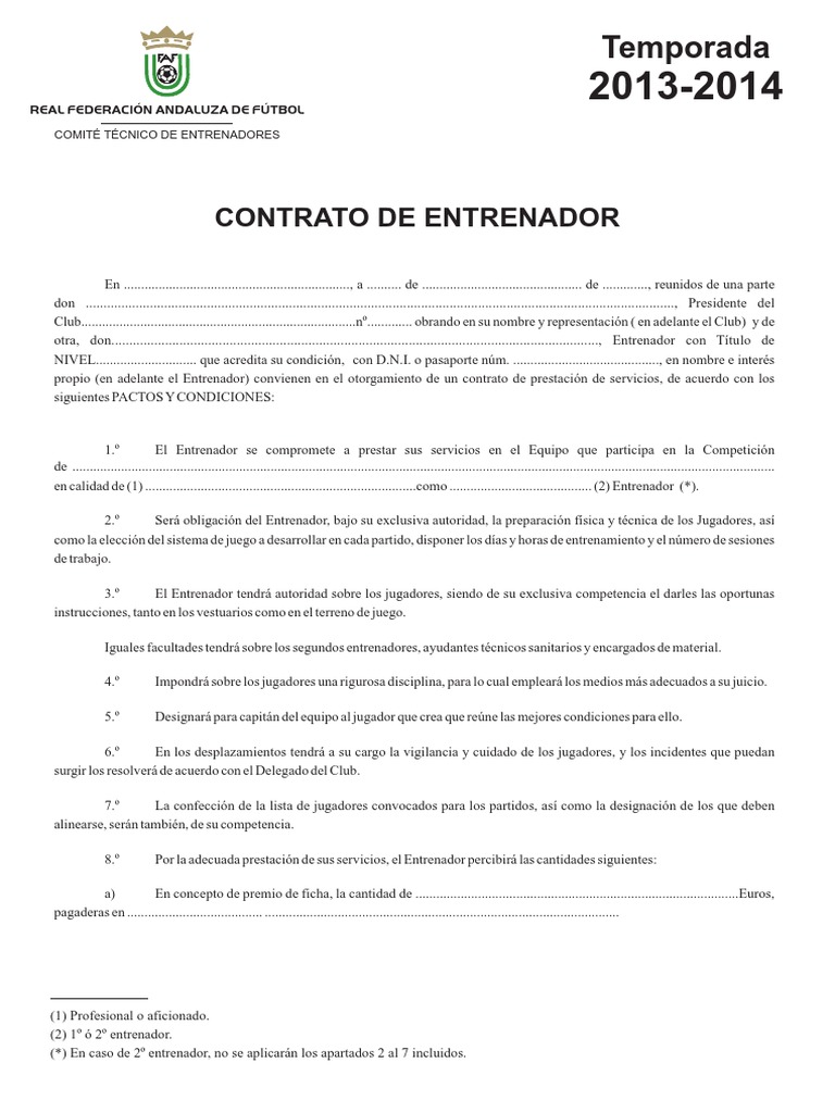 CONTRATO DE ENTRENADOR