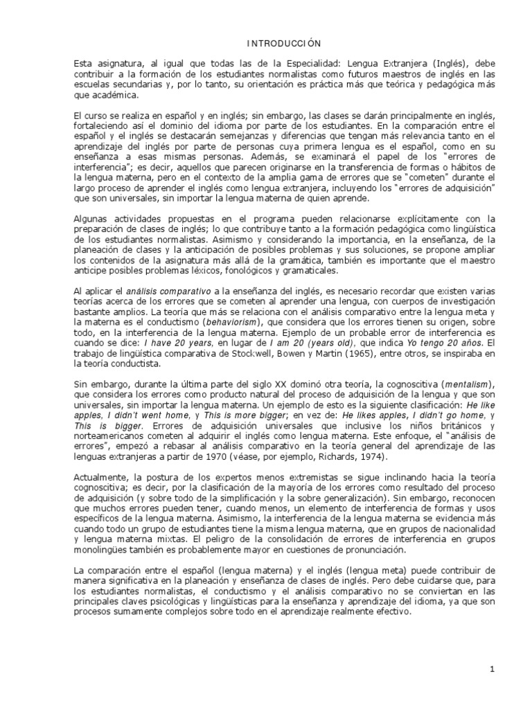 comparativo y el análisis de errores en la enseñanza del inglés. En el Anexo se dan ejemplos de
